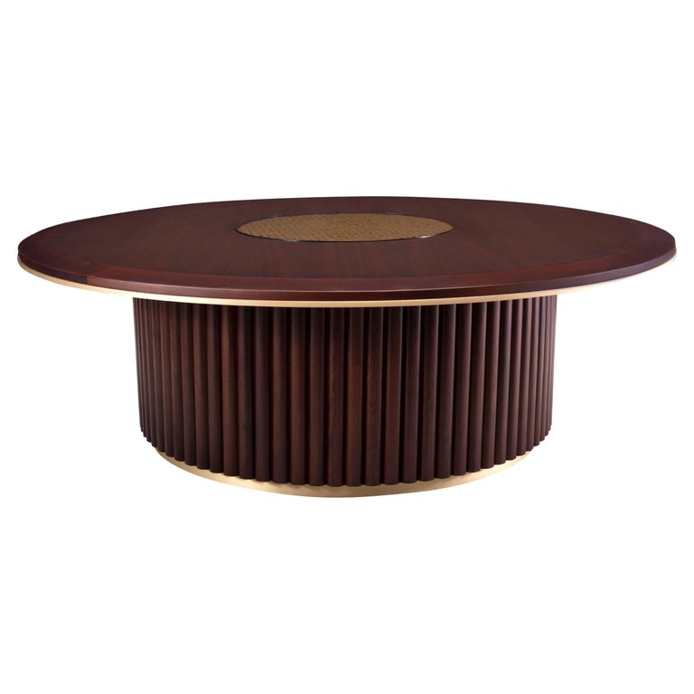 21st Century Matthew Center Table Walnut Wood Rattan By Wood Tailors Club For Sale At 1stdibs